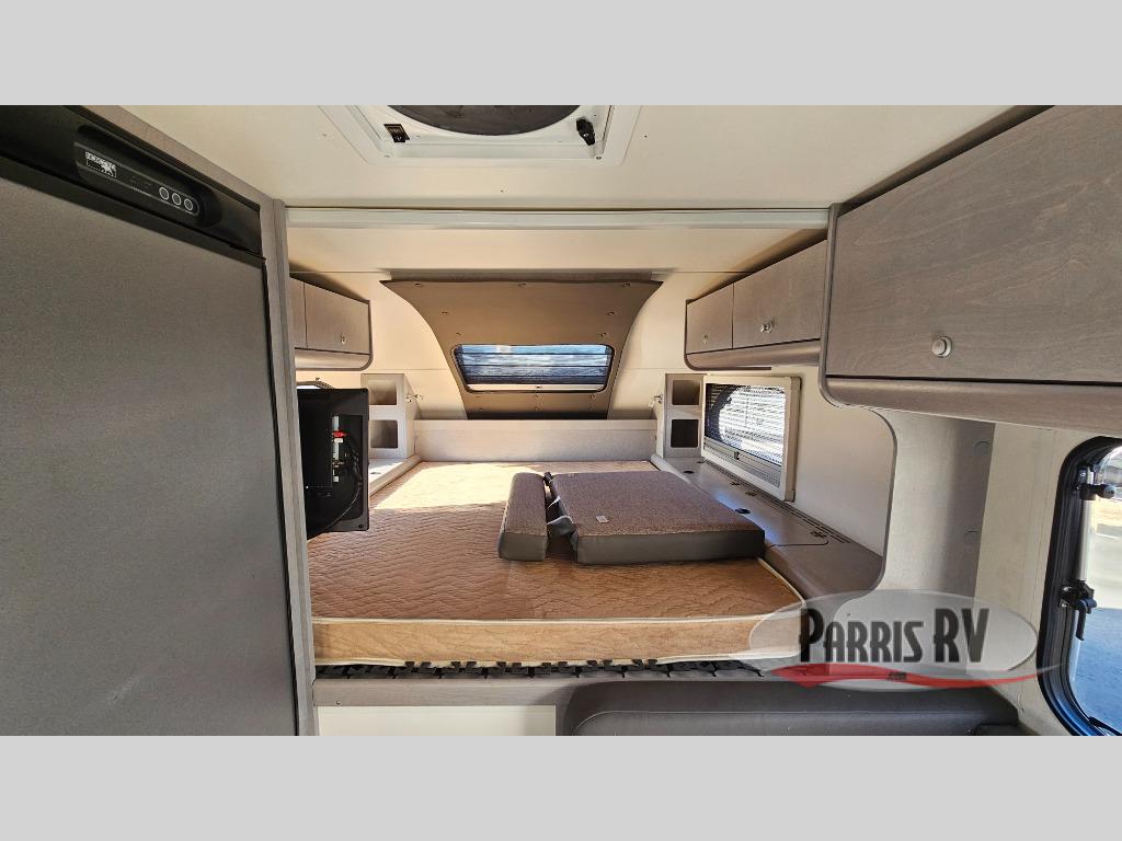 You will find a pass-thru window on this Cirrus truck camper. The exterior has a Maggie roof rack for bringing along extra gear, and there is a motorized 8' side awning to protect you while you're living life outside. The convection microwave/oven is going to make your meal prep easier and faster, and the air conditioning will keep this camper's interior at a desirable temperature even when it's hot outside. This model also comes with an HDTV dish and a great sleeping area with the Froli sleep system.