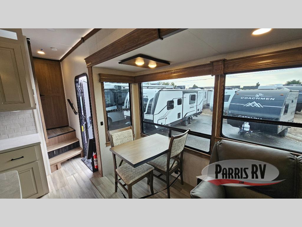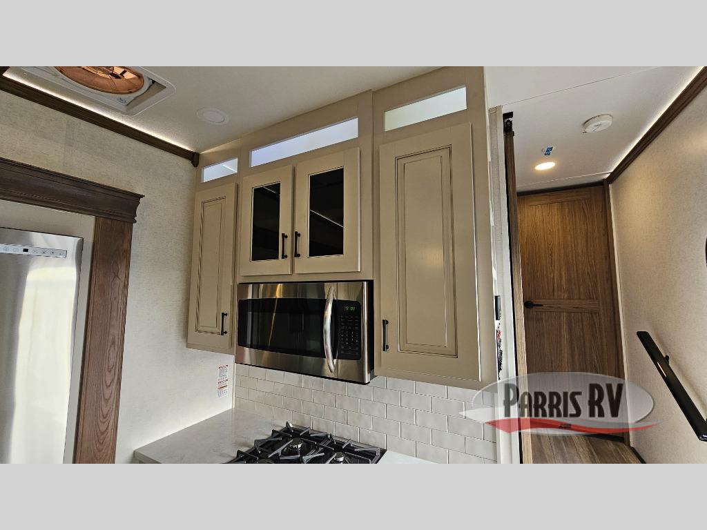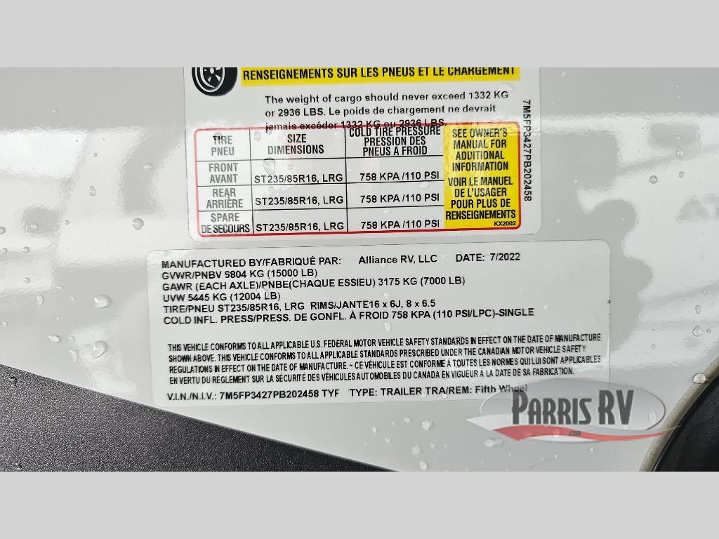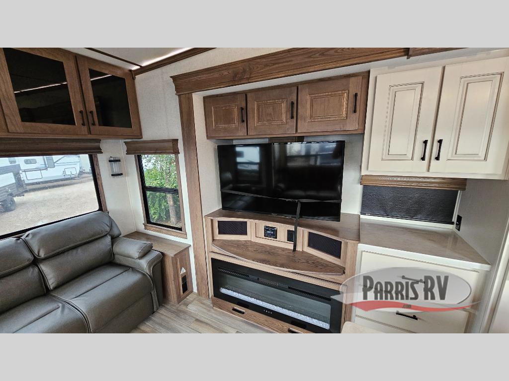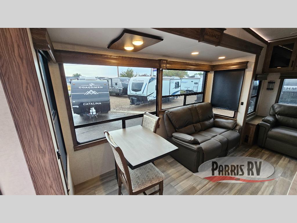 The Paradigm fifth wheels by Alliance RV are functional, high-quality, and luxurious for an unforgettable camping experience. There are three A/C units and a 40K BTU furnace to keep you comfortable year around, and you'll appreciate additional convenient amenities, like the all-in-one enclosed/heated utility center and the color coded and numbered wiring. A Roto-Flex pin box comes standard for hassle-free towing, along with Super-G 4,400 lb. rated tires and Dexter 7,000 lb. axles. You'll love the kitchen with its LG solid surface countertops and Insignia range, plus there is LED motion lighting in the pantry and a Maxx fan with a rain sensor to keep everything fresh when making dinner. Each model also includes an HD Smart TV in the living room and bedroom, plus a Winegard Air 360 antenna to keep you connected to the outside world. And of course there are a variety of options you can choose from to further customize your fifth wheel; dual pane windows, Super Solar Plus, slide out awning toppers, and generator prep or a generator to name a few!