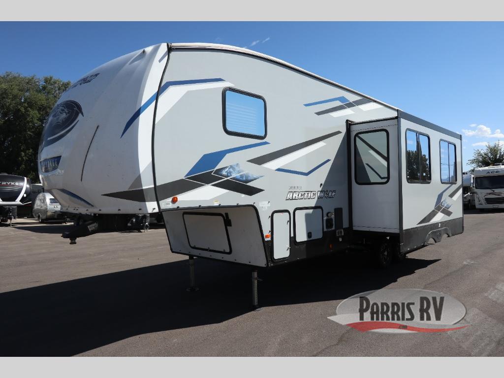 You'll have the very best time tackling outdoor adventures with the Forest River Cherokee Arctic Wolf fifth wheel! Each model has been constructed with a “ToughBend” rigid skirt metal design, Leash Latch pet safety technology, an outside shower with hot/cold water, a 1x engineered wood “SuperTruss” roof structure with 3/8" decking, and aluminum rims. The interior offers you a dual-zone Bluetooth stereo optimized for USB flash drives, iPods, and other MP3 players, and you'll find motion-sensor lighting to help you see when it's dark. There is an interior-mounted “My RV” control pad diagnostic and auto level control pad as well as a smart monitor panel with smart phone Bluetooth connectivity. These models have been prepped for a second air conditioner, and they have also been prepped for a bumper-mount swing-arm grill.