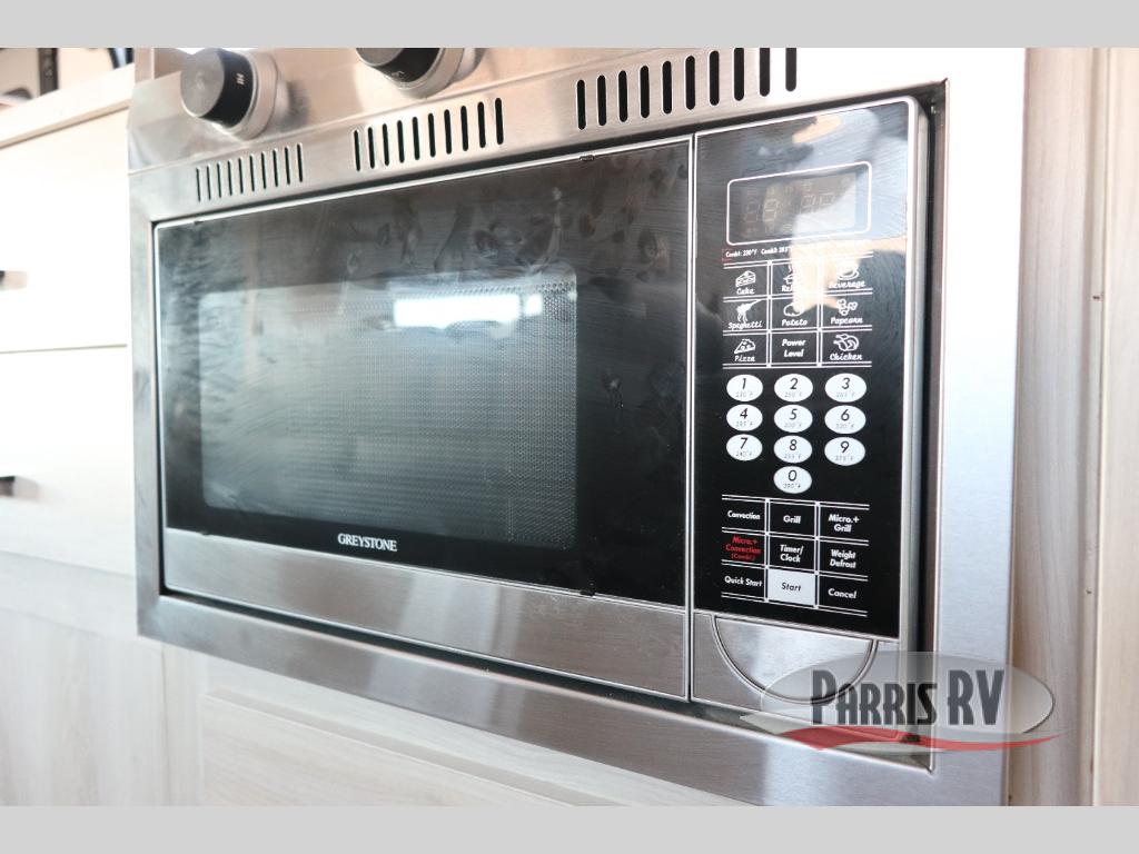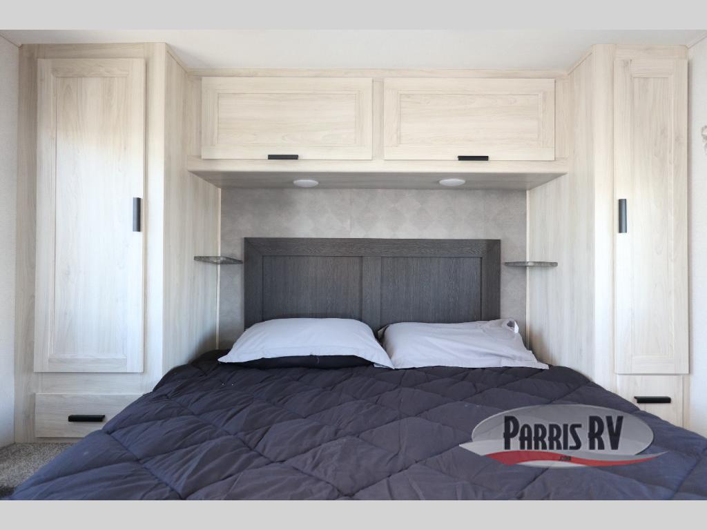 You and your favorite person will love this coach for many reasons including having your own private bedroom with a split bathroom, a walk-around queen bed, plus your own wardrobe. The split bathroom is pretty handy since one person can get ready in the private toilet and sink room while another is taking a shower. The kitchen offers a 10.7 cu. ft. 12V refrigerator, a convection microwave, a recessed three-burner range, soft touch self-closing drawer guides and a cordless 12V charging plate. You will have overhead cabinets and a pantry for storage. The slide out sofa and booth dinette offer a great place to relax and dine plus gives you more floor space. And the queen bunk over the cab will be a popular sleeping space for overnight guests.