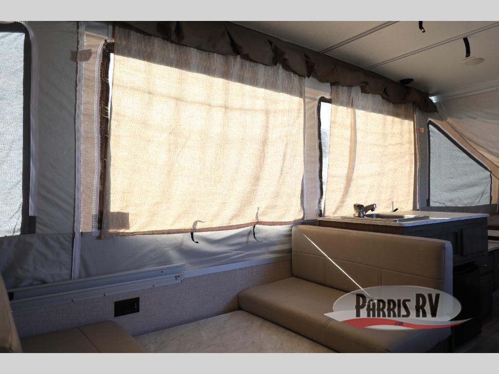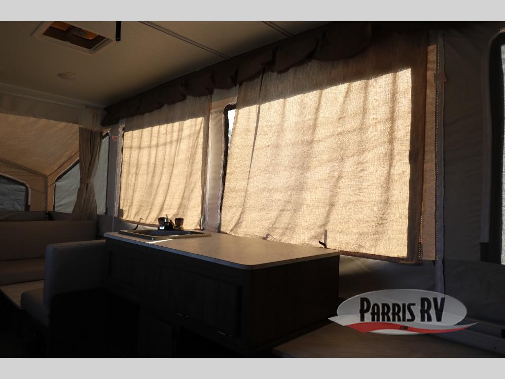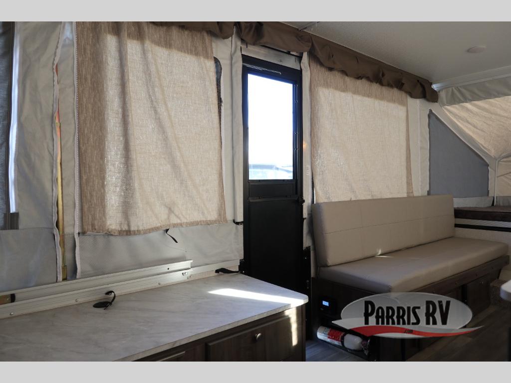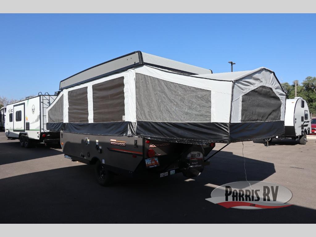 With any Forest River Rockwood Limited (LTD) Series you will enjoy an entry-level tent camper for all your outdoor adventures. You'll love the gray exterior and Autumn Wood interior with wood look flooring and wood drawers. The privacy curtains will come in handy when you're at the campground and there is a one-piece screen door to let fresh air in and bugs out! The bunk end mattresses are heated for your comfort and each model includes interior LED lights, an inside/outside two burner stove, an exterior awning, and many more camping conveniences.