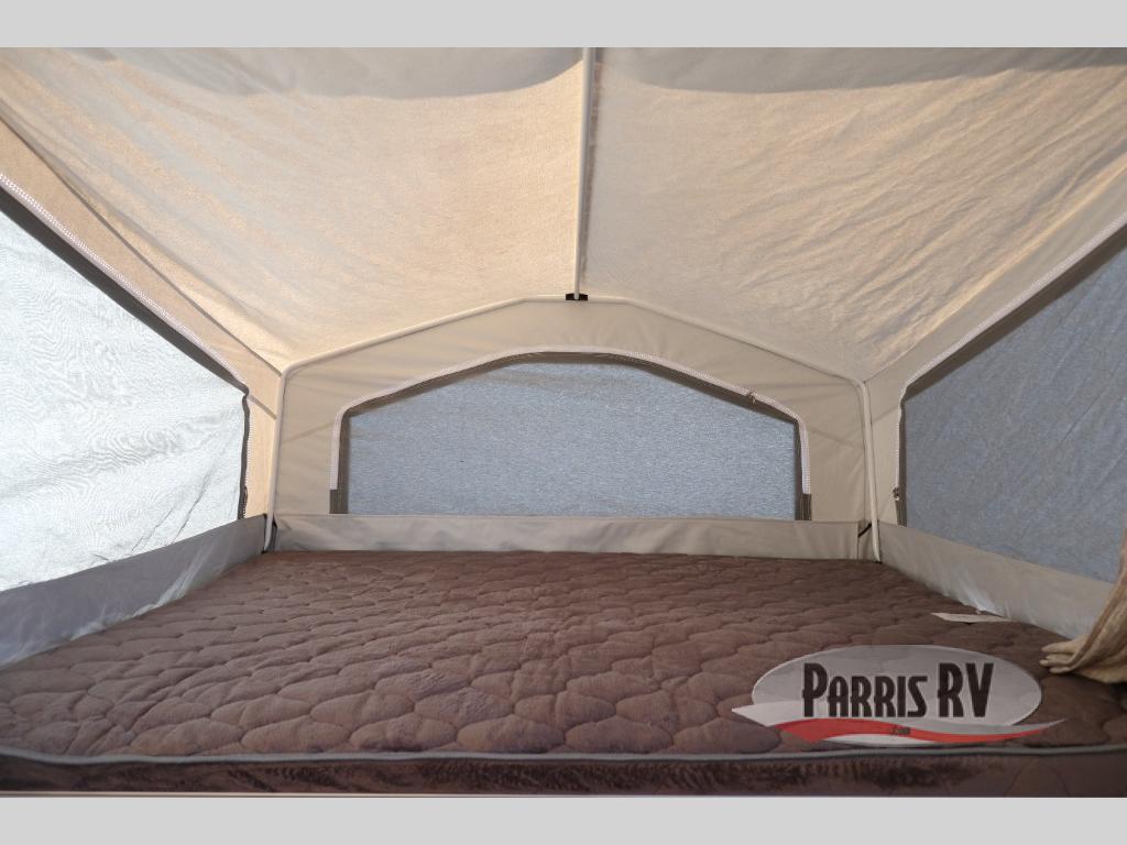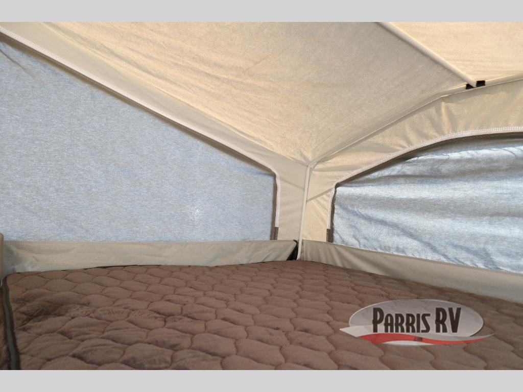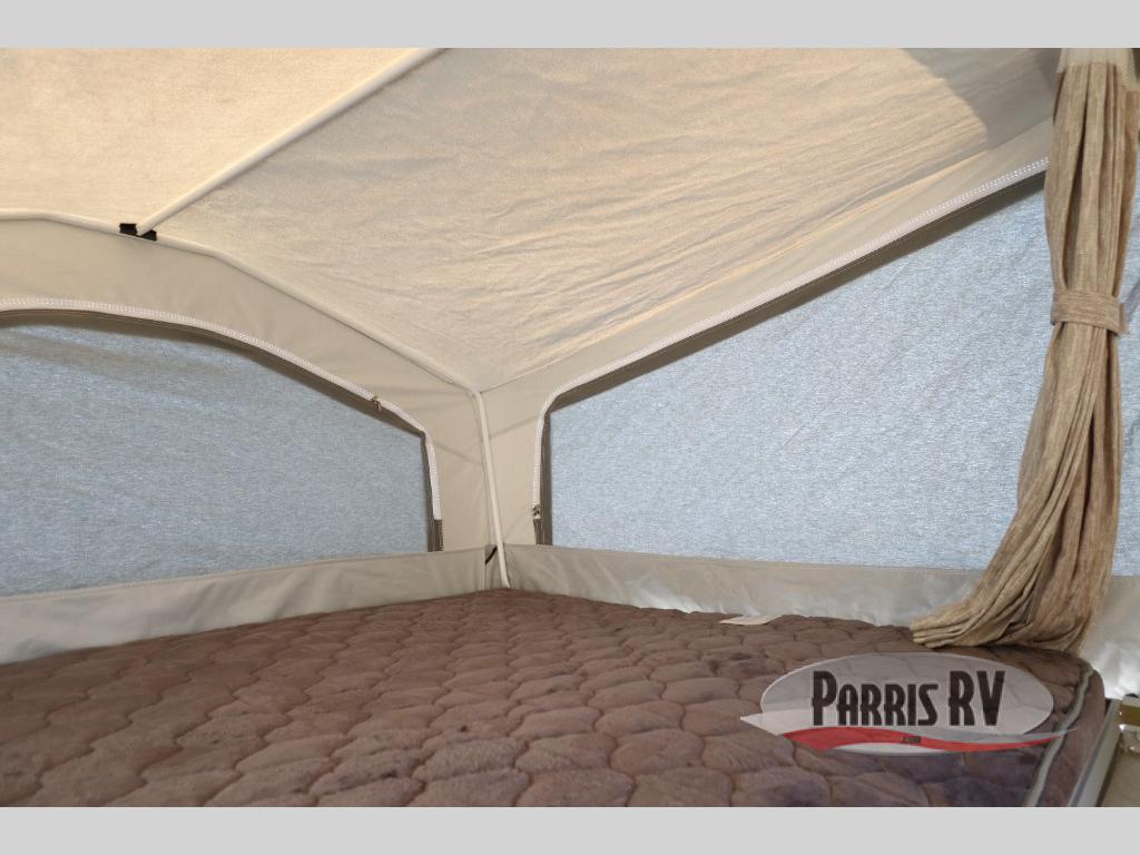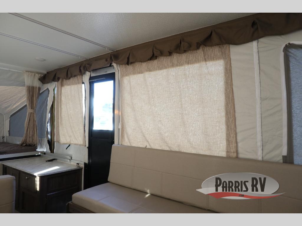 Enjoy the tent-like experience without the hassle of sleeping on the ground with this folding pop-up camper! You can unzip all of the canvas flaps to reveal a beautiful view of your surroundings, and the breeze that flows through the screens will be ultra refreshing. You can even leave these flaps open on a cool, summer night while you sleep on the two tent beds. The 11' awning is going to be a great feature that will allow you to stay protected while you whip up dinner on the carry-out range, and you can even sit down to eat that meal inside at the booth dinette and the gaucho/bed.