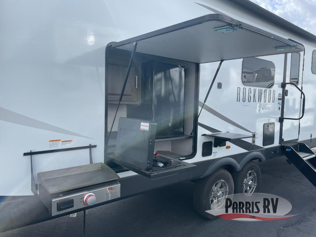 With any Rockwood Ultra Lite fifth wheel and travel trailer by Forest River RV, the superior construction includes a painted fiberglass front cap with clear coat, a full laminated one-piece walkable roof, aluminum truss roof bracing, and a six-sided full aluminum frame. Some safety standards include Dexter torsion axles, MORryde strut assist steps, and the TST tire pressure monitor system. The interior offers the OneControl panel with WeRV app control, screwed and glued, solid wood cabinet doors and drawers with hidden hinges, metal drawer glides and residential or upgraded hardware. You'll also find solid surface kitchen countertops, designer kitchen backsplash, plus many more features depending on the Rockwood Ultra Lite you choose!