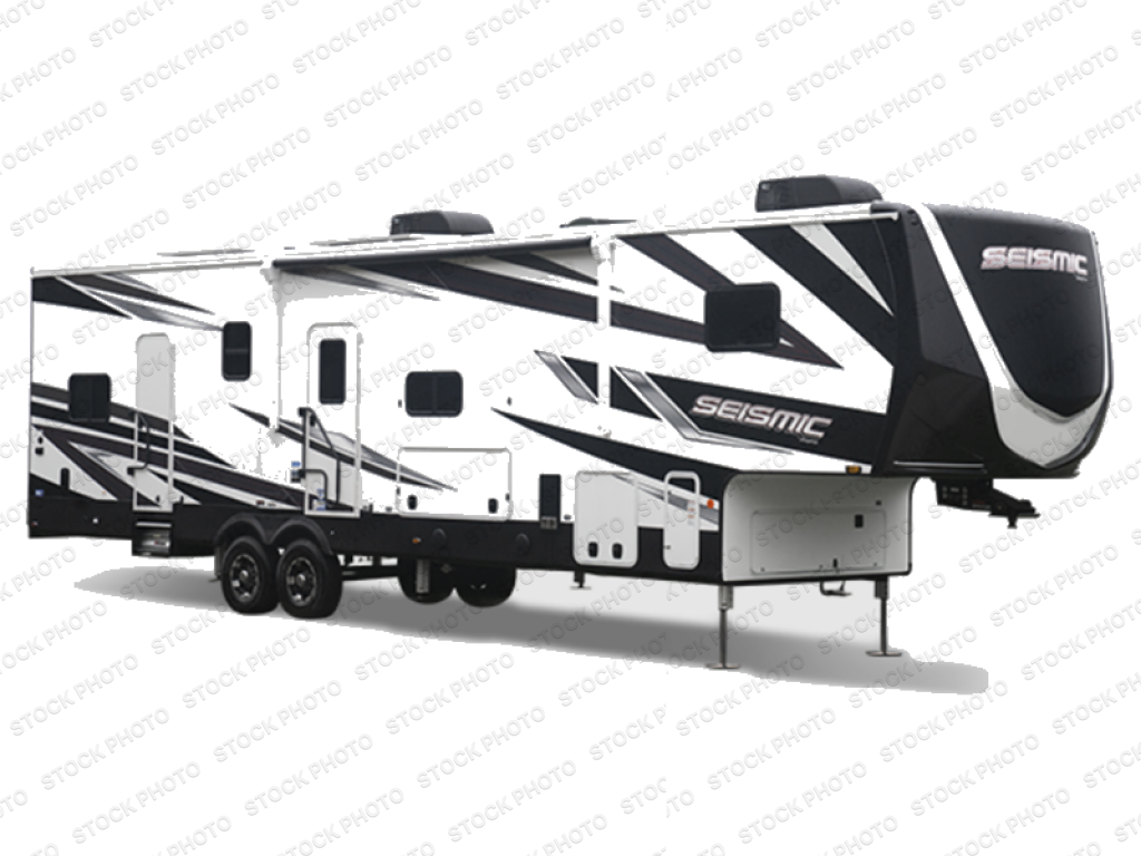 One look at the Seismic toy haulers by Jayco, and you'll never go back! Each model features a custom automotive-grade vinyl exterior graphics package, a painted fiberglass front cap with built-in LED lighting, and 102" wide-body structural steel I-beam construction. You'll find the pass-through storage with Slam-Latch baggage doors will make unpacking easier than ever, and the rear ramp door/patio with anti-slip, non-skid flooring will allow you to unload your toys with no trouble at all. These toy haulers feature a three seasons garage wall/doors, a 30 gallon fuel tank with a timer, and exterior marine-grade speakers to keep the party going. The Climate Shield zero degree tested weather protection includes a 35,000 BTU furnace, PEX plumbing, and a fully enclosed and heated underbelly so you can enjoy your adventures year around. And we haven't even touched on the interior luxuries you'll find, like solid hardwood cabinet doors, drawers, and trim, and a residential king mattress with under-bed storage!