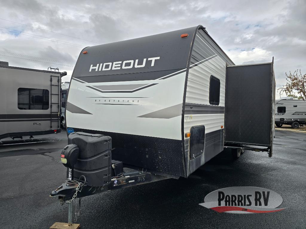 The Keystone Hideout travel trailer and destination trailer will be just what the doctor ordered for a stress-free holiday at your favorite campsite! There are a few exclusive features that you'll only find on a Keystone product, like the color-coded unified wiring, the preparations for 4G LTE and Wi-Fi, the Tuf-Lok™ thermoplastic duct joiners, the in-floor heating ducts, and the Tru-fit™ slide construction. Each model has a power awning for some shade in the afternoon, and the tinted safety glass windows will prevent the harmful UV rays from getting inside. You'll also have blackout night shades that you can close when you want privacy, and the SolarFlex 200 is a solar power system that will refill your battery to operate onboard 12V systems with just one day of peak sun exposure.