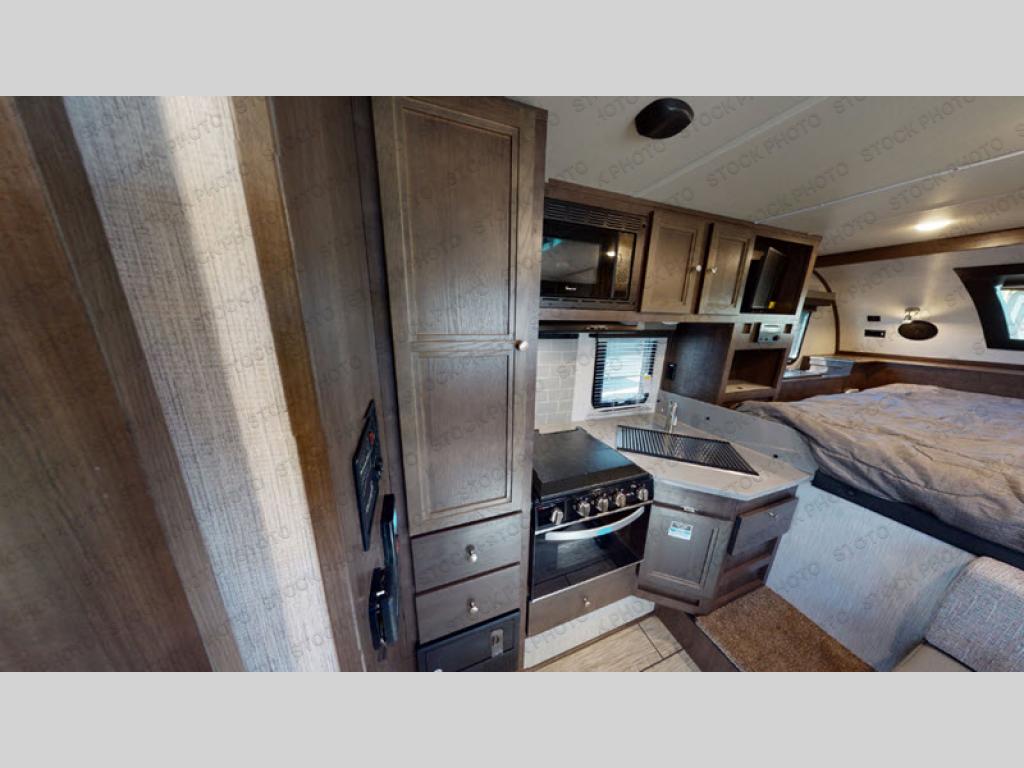 Pack up your fishing gear and load this hard side truck camper onto your truck! Start your mornings feeling recharged after sleeping on the front queen bed with a wrap around nightstand, chests on either side, and a wardrobe to keep your shirts wrinkle-free. You'll also enjoy the entertainment center with a TV on this model to watch your favorite shows in bed. The kitchen has everything you need to prepare your best meals including two pantries, one of which is a wardrobe/pantry for double use. The sofa with a table offers a comfortable place to enjoy your meals, as well as transform into an extra sleeping space.