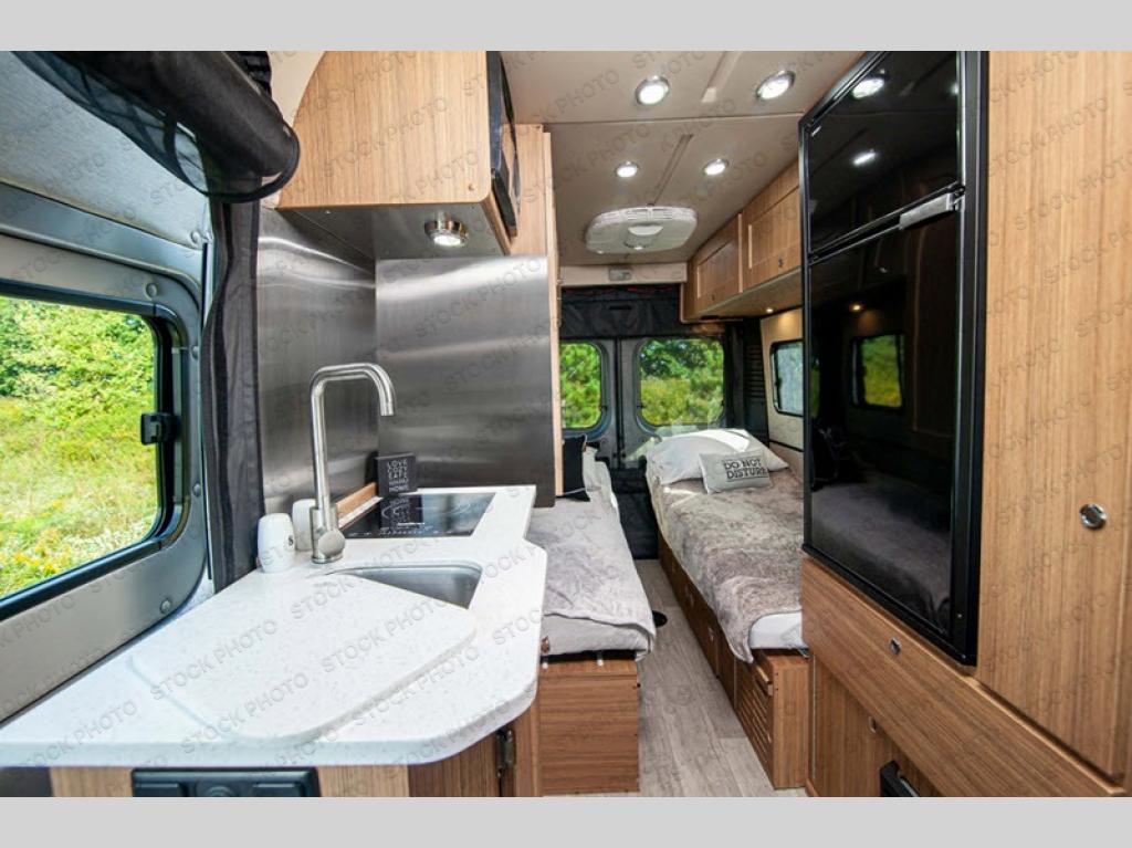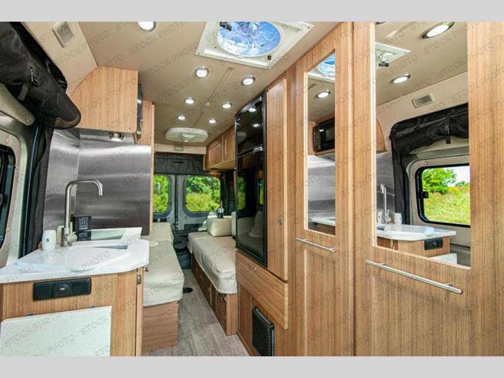 The Roadtrek Class B gas motorhomes are built upon the stylish Ram ProMaster 3500 chassis with a 3.6L V6 gas engine to power your trips near and far. The Uconnect 5 HD radio with Apple Car Play and Android Auto will make the drive just as sweet as the destination. Each model includes a 12V refrigerator, a two-burner recessed propane stove with a flush cover and built-in igniter, and ample storage space for all your belongings. The Firefly coach control system monitors the water, propane, battery charge levels, battery disconnect, and generator hour meter for your convenience. There are even solar panels to go off the grid, an outdoor shower to rinse the dirt off your feet before entering inside, and a retractable awning to protect you rain or shine. Come find your favorite one today!