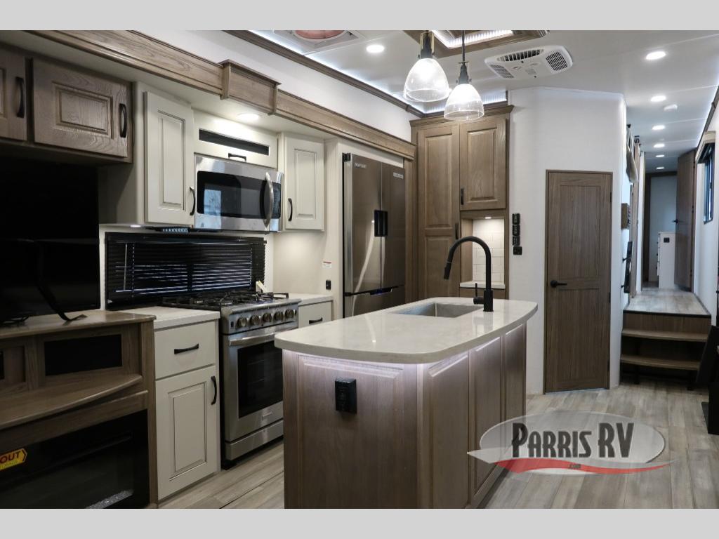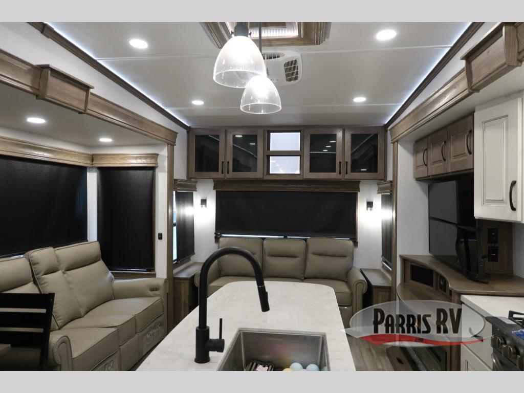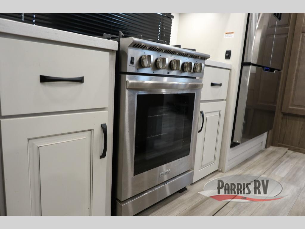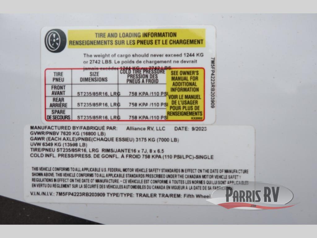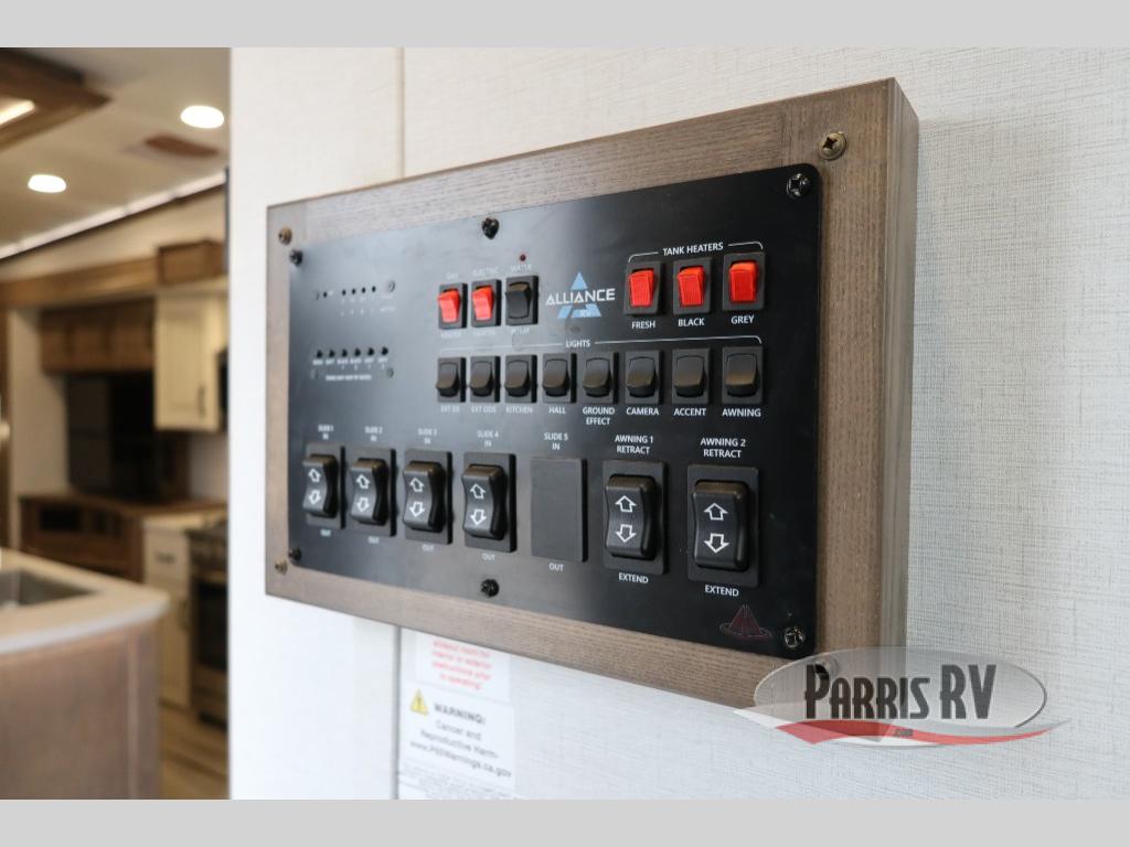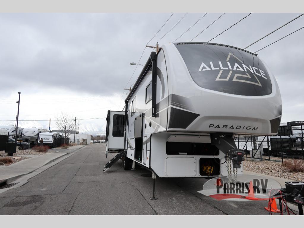 The Paradigm fifth wheels by Alliance RV are functional, high-quality, and luxurious for an unforgettable camping experience. There are three A/C units and a 40K BTU furnace to keep you comfortable year around, and you'll appreciate additional convenient amenities, like the all-in-one enclosed/heated utility center and the color coded and numbered wiring. A Rota-Flex pin box comes standard for hassle-free towing, along with Super-G 4,400 lb. rated tires and Dexter 7,000 lb. axles. You'll love the kitchen with its LG solid surface countertops and Insignia range, plus there is LED motion lighting in the pantry and a Maxx fan with a rain sensor to keep everything fresh when making dinner. Each model also includes an HD Smart TV in the living room and bedroom, plus a Winegard Air 360 antenna to keep you connected to the outside world. And of course there are a variety of options you can choose from to further customize your fifth wheel; dual pane windows, Super Solar Plus, slide out awning toppers, and generator prep or a generator to name a few!