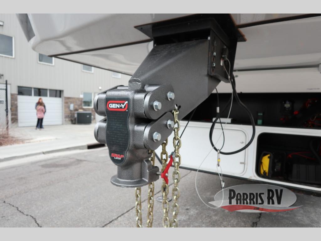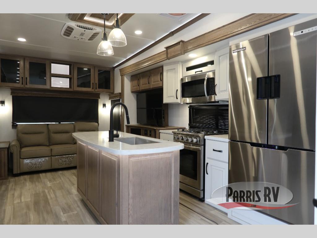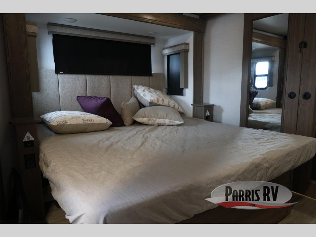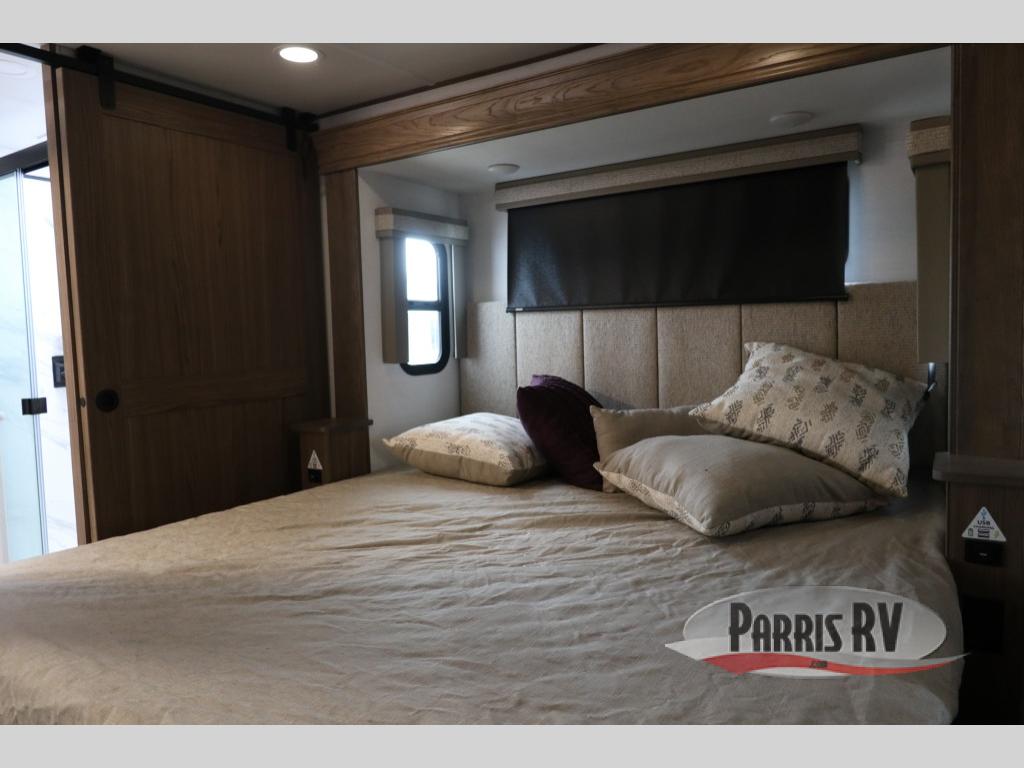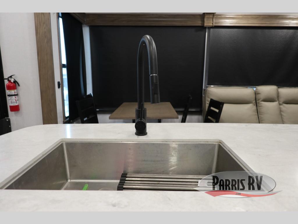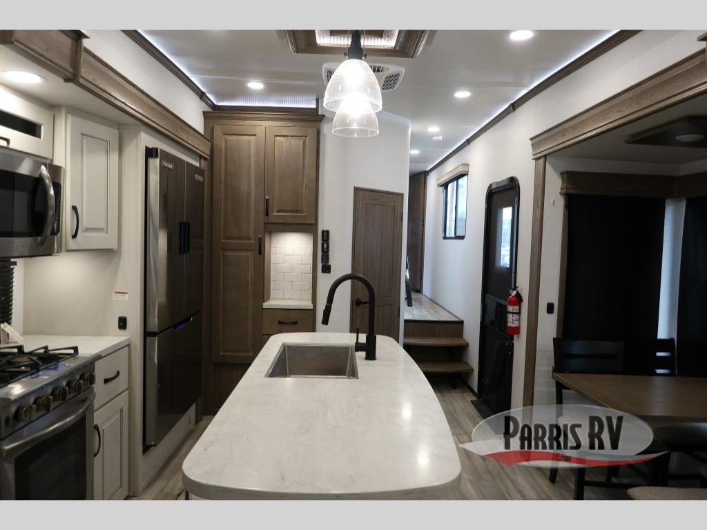 The Paradigm fifth wheels by Alliance RV are functional, high-quality, and luxurious for an unforgettable camping experience. There are three A/C units and a 40K BTU furnace to keep you comfortable year around, and you'll appreciate additional convenient amenities, like the all-in-one enclosed/heated utility center and the color coded and numbered wiring. A Rota-Flex pin box comes standard for hassle-free towing, along with Super-G 4,400 lb. rated tires and Dexter 7,000 lb. axles. You'll love the kitchen with its LG solid surface countertops and Insignia range, plus there is LED motion lighting in the pantry and a Maxx fan with a rain sensor to keep everything fresh when making dinner. Each model also includes an HD Smart TV in the living room and bedroom, plus a Winegard Air 360 antenna to keep you connected to the outside world. And of course there are a variety of options you can choose from to further customize your fifth wheel; dual pane windows, Super Solar Plus, slide out awning toppers, and generator prep or a generator to name a few!