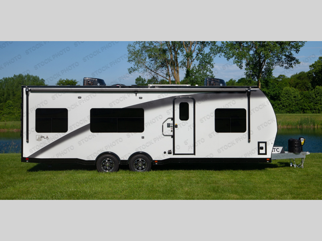 With any PLA 700 toy hauler travel trailer or fifth wheel by ATC Trailers you will find a full perimeter welded aluminum frame with six sides welded together for maximum strength and durability. The torsion axles with EZ lube and self-adjusting brakes will make towing easier than ever, and there is a low angle ramp for hassle-free unloading of your toys. Step inside to find dimmable ceiling lights throughout, residential solid surface countertops throughout, all-aluminum cabinets and drawers, and fiberglass batten insulation to keep you comfortable. You will be able to camp year around thanks to the included All Weather Protection Package that features a ducted furnace and A/C, an enclosed underbelly with radiant barrier, 12V heat pads on water lines, and more. The included 700 Series Package comes with an Airline Track tie-down system to keep your toys secure, Goodyear tires on premium aluminum wheels, skirting with ground effects, and more features you won't want to camp without. There are even some 700 Series optional upgrades/add-ons to further customize your toy hauler!