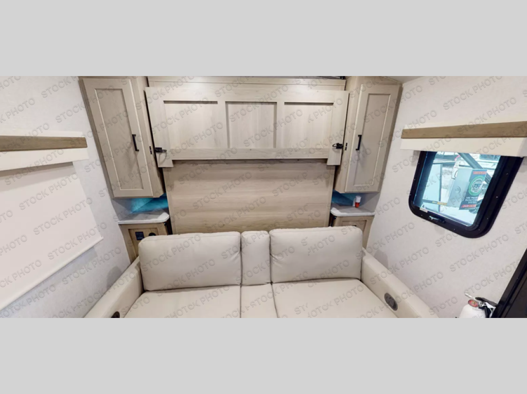 Comfortable sleeping space, convenient seating space, and a full rear bath makes this couple's trailer the one! You will love being able to relax on the sofa during the day, and sleep on the Murphy bed at night. There is a single slide out that will provide you more space to move around or cook meals, and the full bath includes a large shower so you won't feel cramped. If it's a rainy day you can watch movies on the 32" 12V TV, and if it's nice out, sit under the 14' power awning and cook lunch on the outside griddle. The possibilities are endless with this couple's trailer! The optional Power Package available on this model includes three 200W solar panels, a 30 Amp solar charge controller, two Mastervolt smart remotes, and more off-grid features!