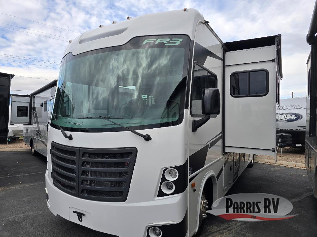 With each FR3 Class A gas motorhome by Forest River, you will find an easy-to-drive coach with a spacious interior allowing you to gather with friends and family with convenience and style found throughout! Each is built with vacuum-bonded construction, a one-piece fiberglass roof with extended rain spouts, a steel firewall and A-pillar extension, Bi-LED headlamps and lower LED fog lights, and grey Rotocast storage boxes with drains. Inside, you will enjoy black hardware, appliances, plumbing fixtures, and a glass shower door frame. You will also find a stainless steel kitchen sink with a bamboo cutting board and roll-up dryer, heavy-duty full-extension ball bearing drawer guides, dual-access dinette storage with doors, and nightstands with charging stations to keep your cellphones ready for whatever is next. Make your selection today!